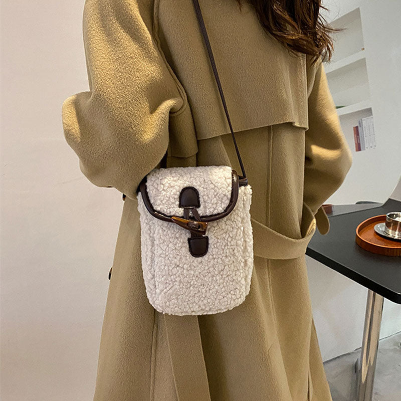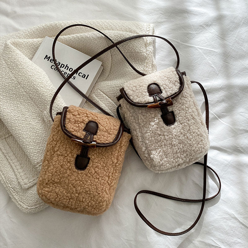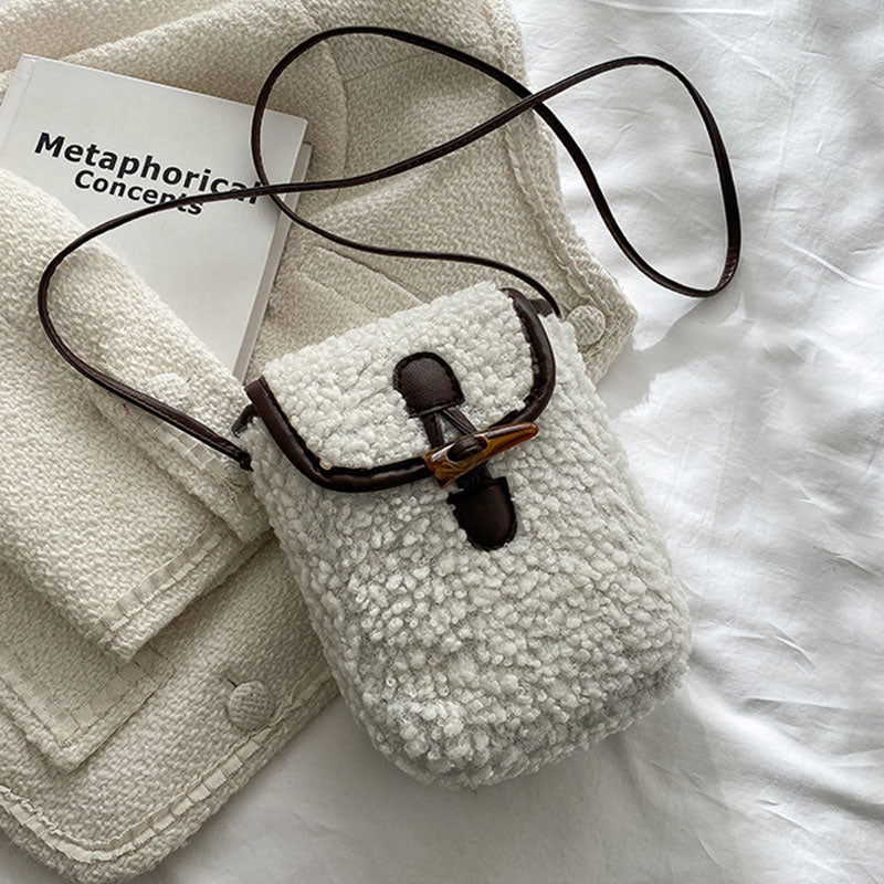 ふわふわのボア素材とトグルデザインが大人可愛いスマホショルダーバッグ。