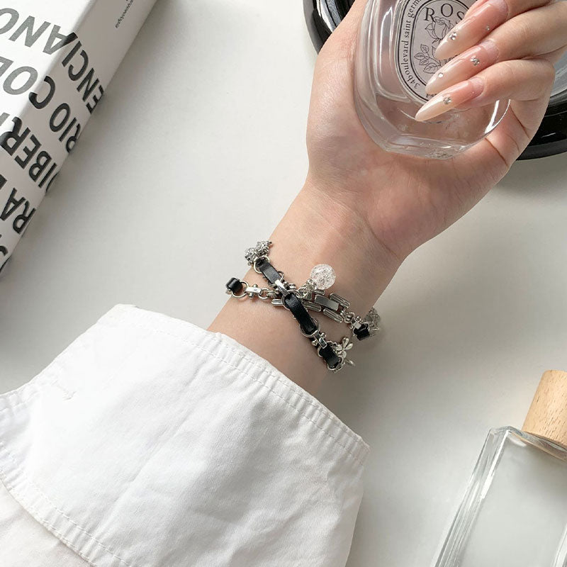 【華奢な煌めき】チャーム付きダブルチェーンアップルウォッチバンド【Apple Watch】
