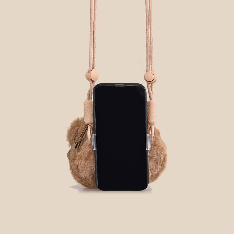 【ふわもこベア】くまポーチ付きサイドクリップスマホショルダー【ストラップタイプ】
