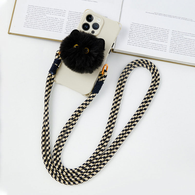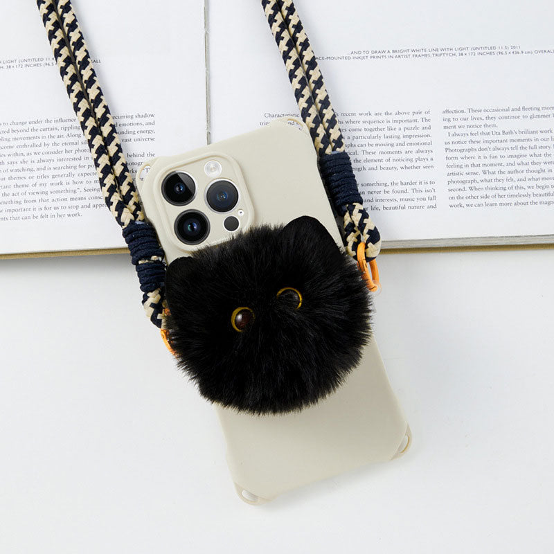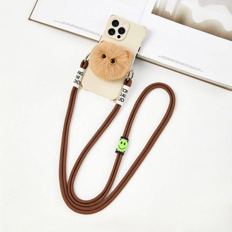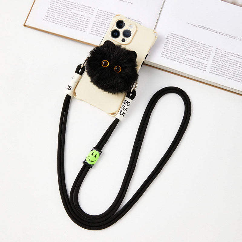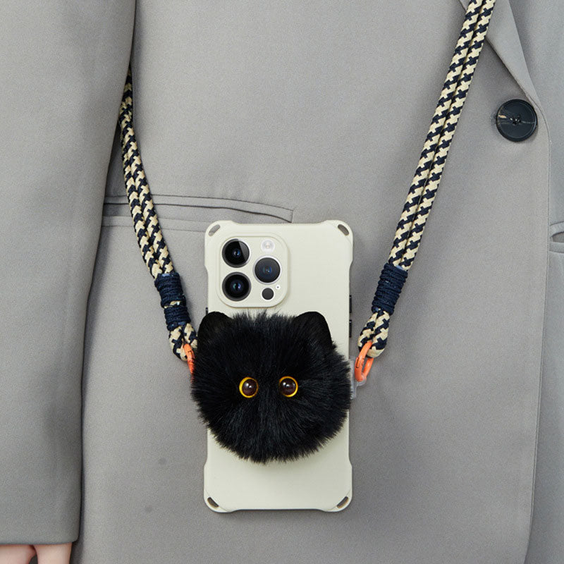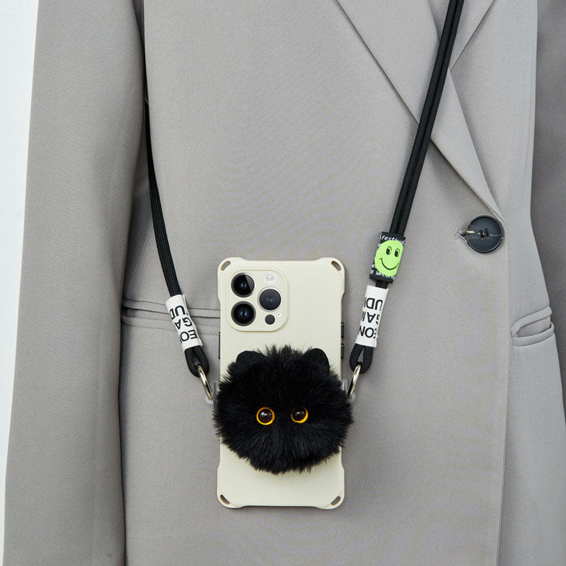 【キュートな瞳👀】もふもふにゃんこサイドクリップスマホショルダー【ストラップタイプ】
