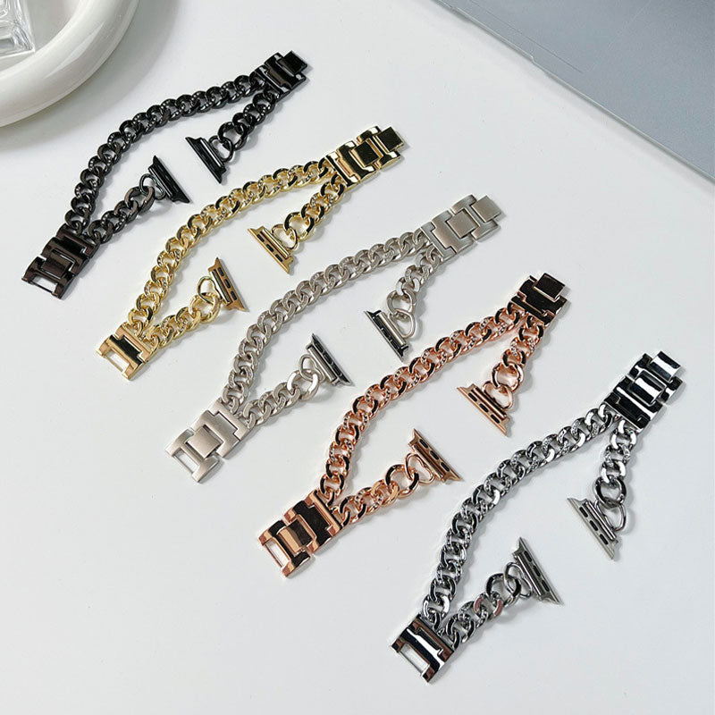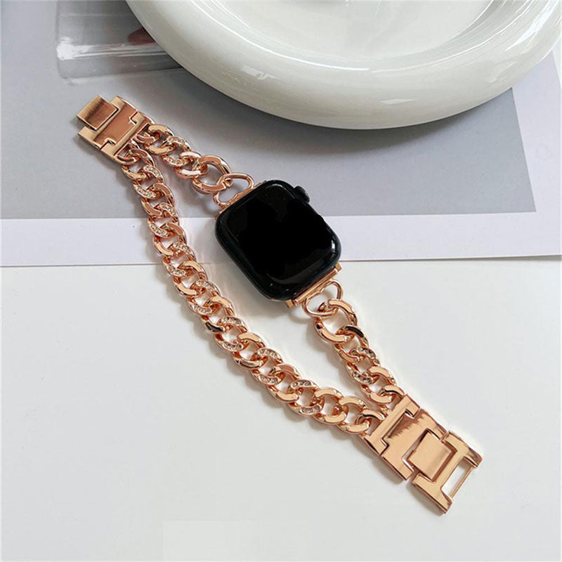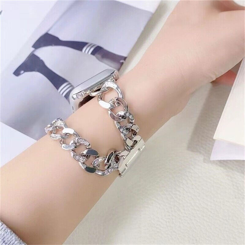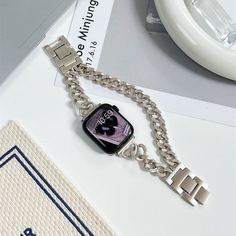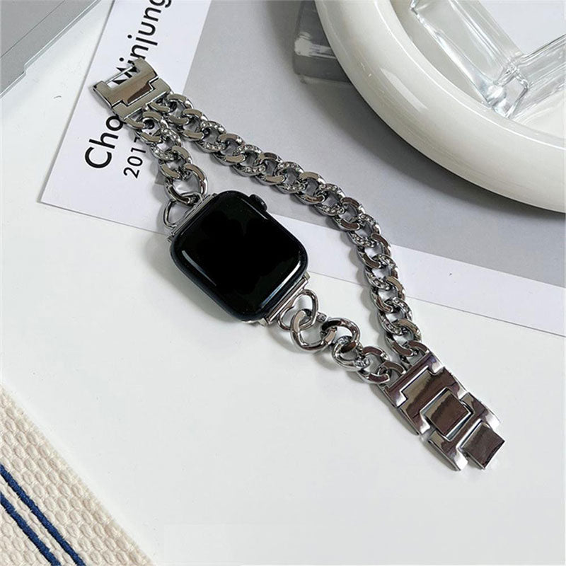 【華やかに煌めく】メタルチェーンダブルループアップルウォッチバンド【Apple Watch】