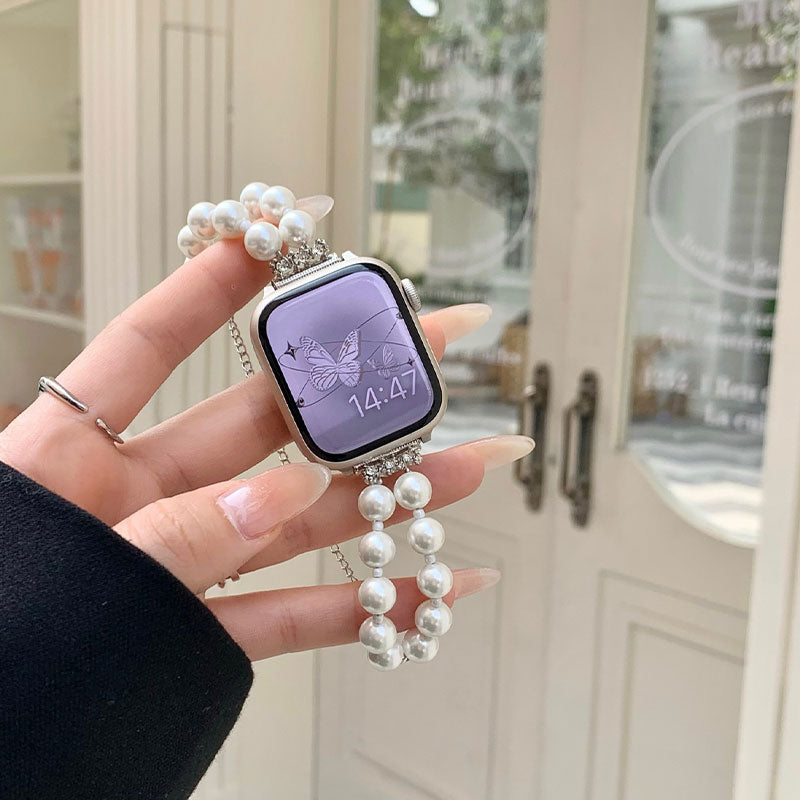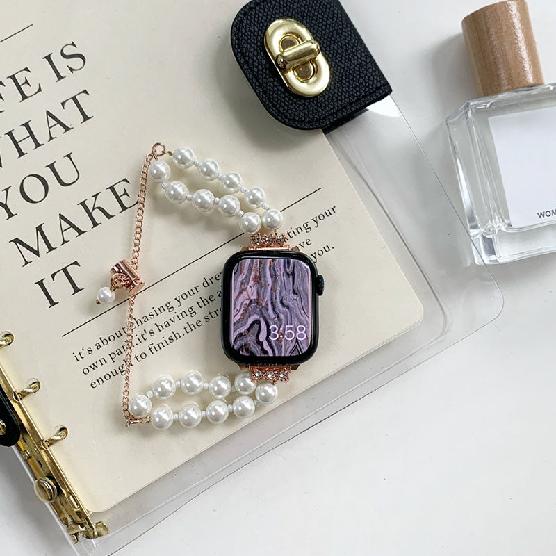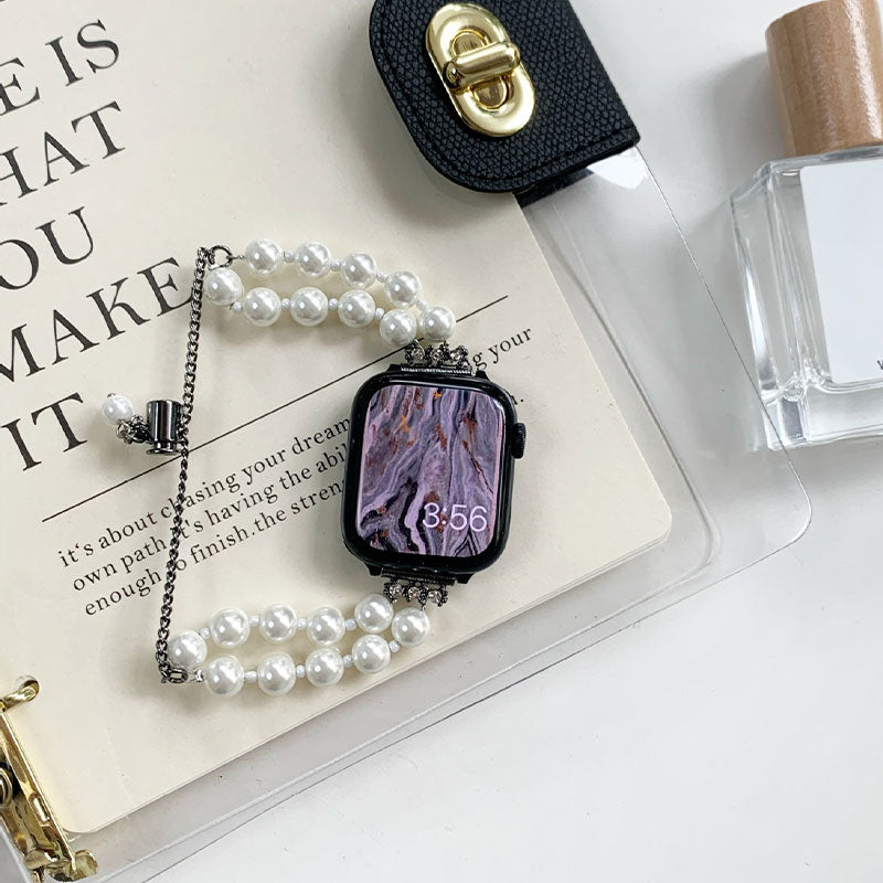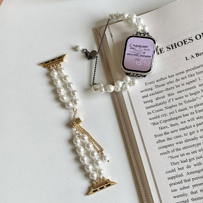 【華やかに魅せる】2連パールブレスアップルウォッチバンド【Apple Watch】